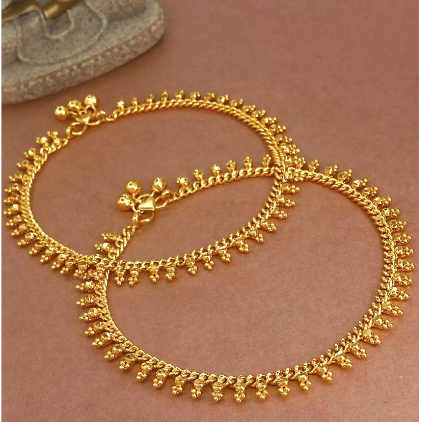Gold-plated anklets over a copper base